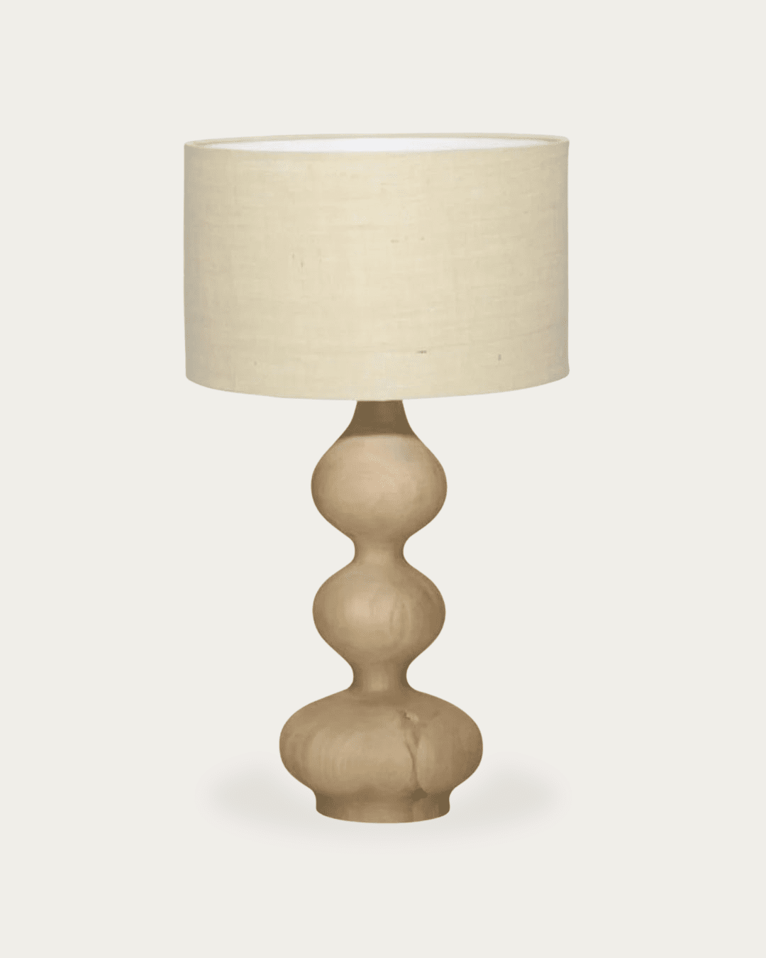 The Trini table lamp showcases an organic bubble shape crafted from lightweight wood and jute, seamlessly blending nature-inspired textures into your space.