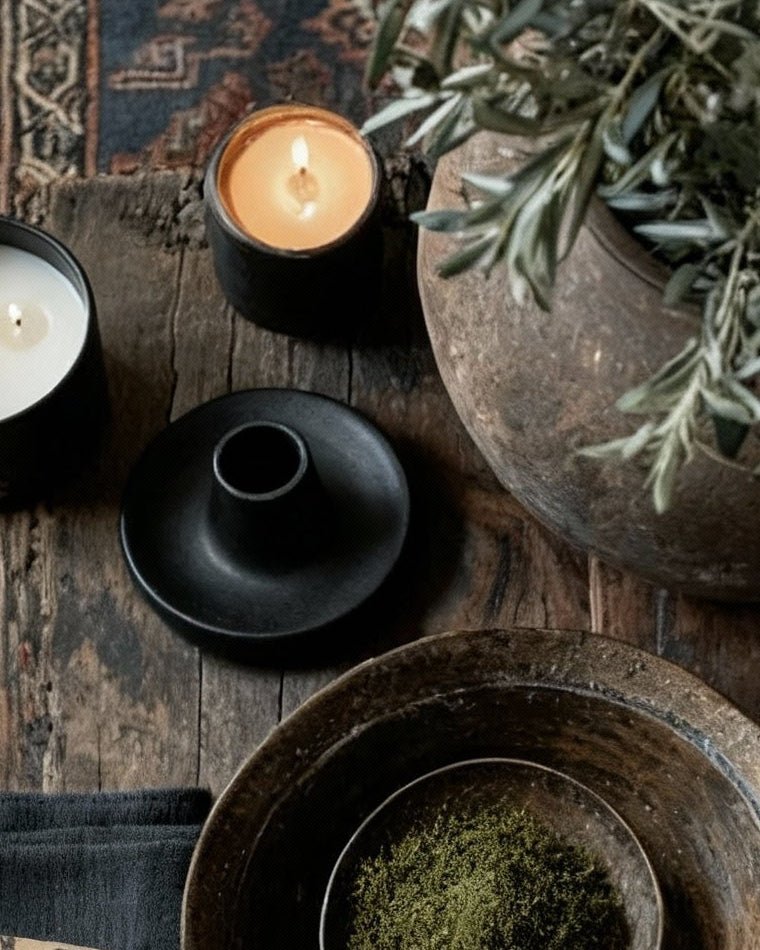 Some pieces do more than hold a candle. Kolbeinn is a stoneware taper candle holder with a speckled reactive glaze and an organic shape. The wide base keeps it steady and protects surfaces from melted wax. It brings quiet structure to a table or shelf while keeping the focus on form. Available in two colors.