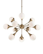 The Kela chandelier is a stunning brass sputnik inspired by mid-century modern design. This timeless piece adds a touch of cozy modernism to any space, making it the perfect classic fixture for your home.
