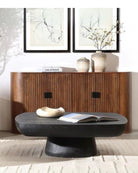 A style and storage workhorse, the Emilie sideboard is perfect for anywhere you need some extra storage. It has a reeded wood front and smooth rounded sides.