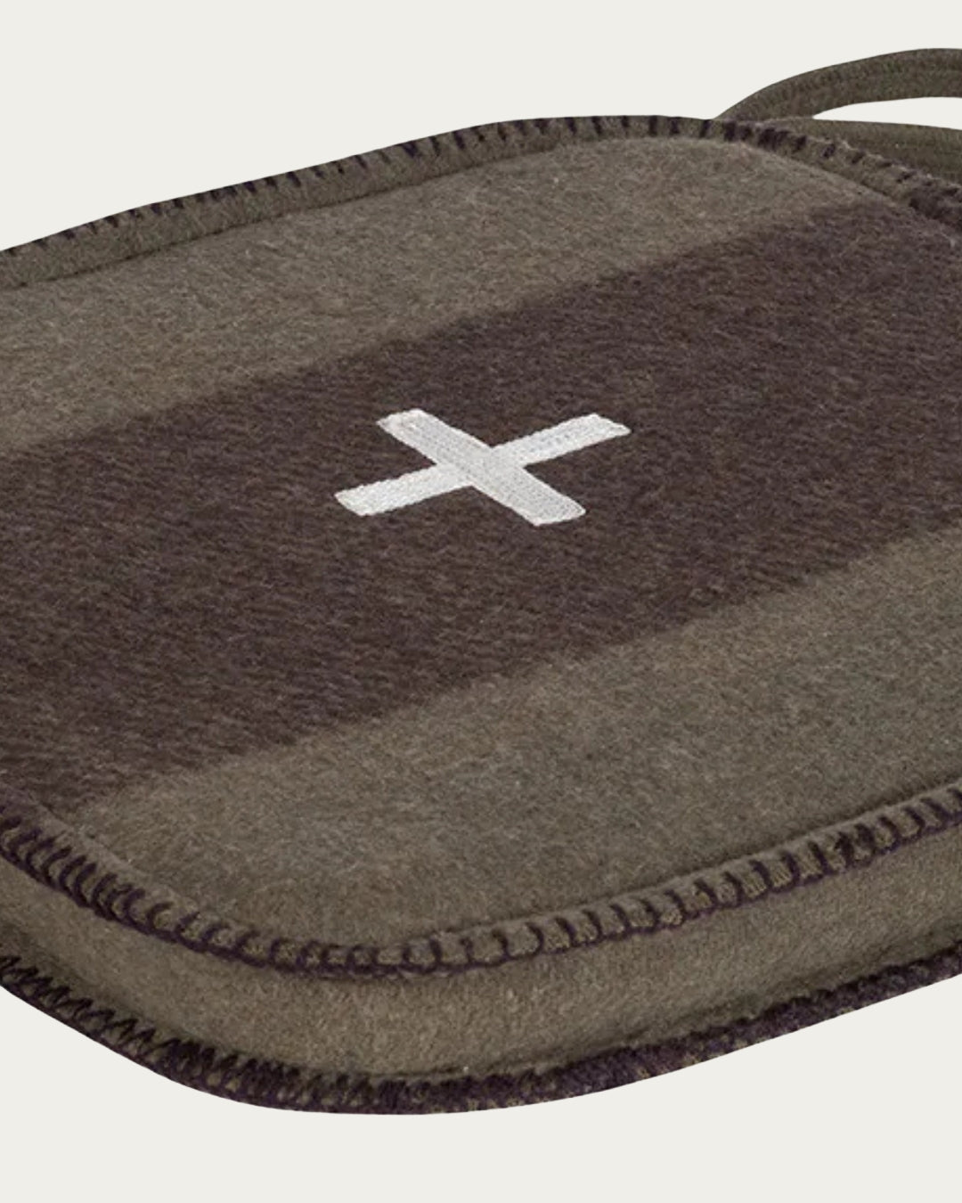 The Frey chair cushion takes its cue from vintage Swiss Army blankets—woven from a wool blend with visible stitching and a zigzag hem that keeps the history intact. It brings texture and utility to everyday seating: softening wooden chairs, adding structure to built-in benches, or layering onto loungers for extra support. Simple, durable, and part of the Frey collection—military classics reworked for modern spaces.