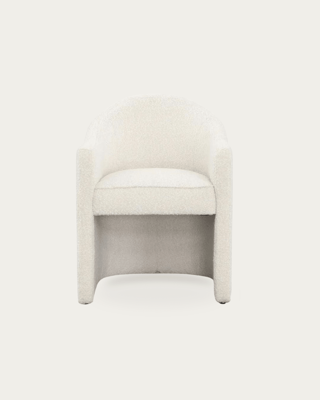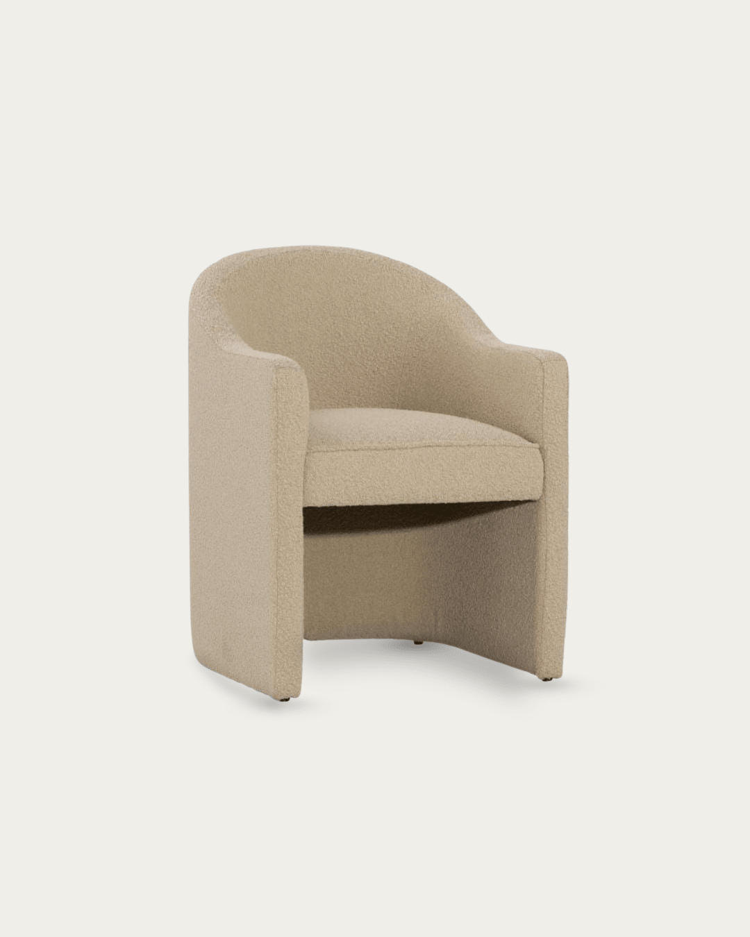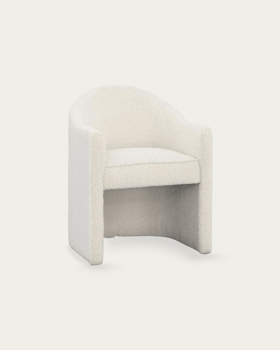 The Darby dining chair – a bold testament to simplicity with its clean, modern silhouette. Clad in  boucle fabric,  it's more than just a seat; it's the perfect match for your dining table, offering effortless style and comfort.