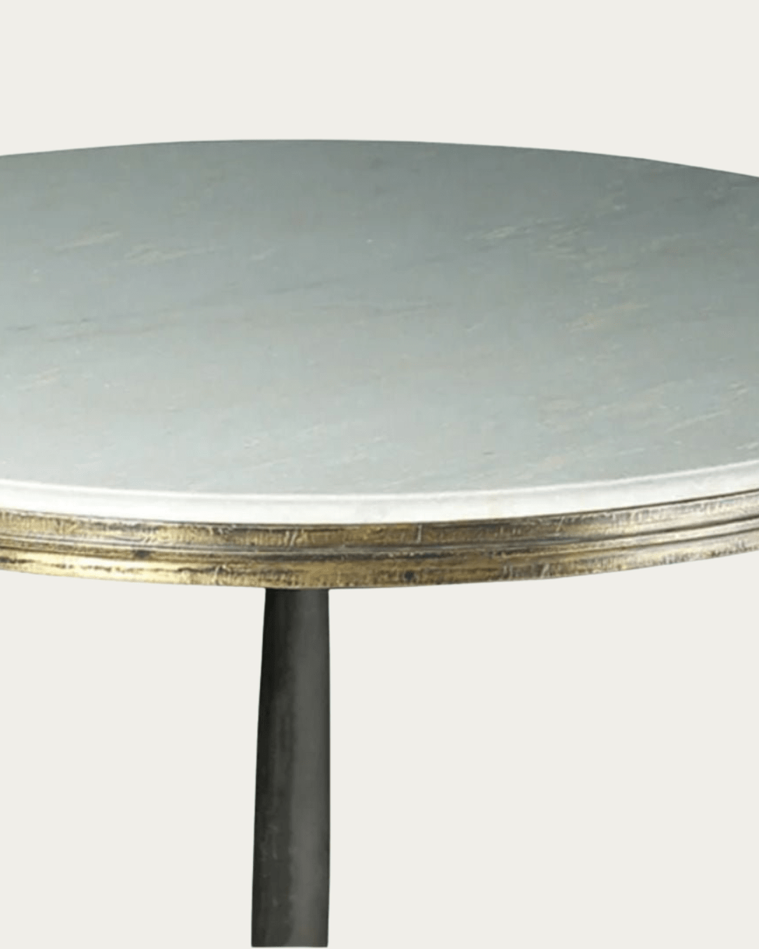 Enjoy a baguette with brie or a flaky pastry at your very own French cafe-inspired white marble bistro table. Our Ingrid round table is authentic down to the very last detail, a gorgeous round marble table top surrounded by elegant brass edging sits atop a solid cast iron base. Check out our Ingrid long marble bistro table below.