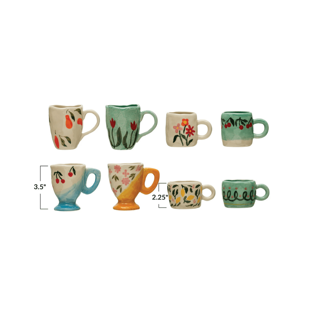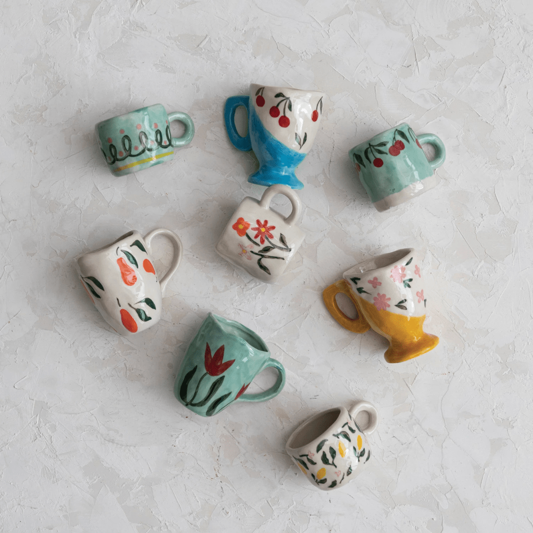 Meet the Elva collection—organically shaped ceramic espresso mugs that make your daily caffeine fix a little more fun. These small mugs are just the right size for an espresso cup or a small coffee mug for kids. Each one features playful fruit prints, floral designs, and unique silhouettes that are perfect for mixing and matching into a set that’s as bold (or quirky) as you want it to be. We love how these bring a little personality to the table—because your coffee ritual should never be boring.