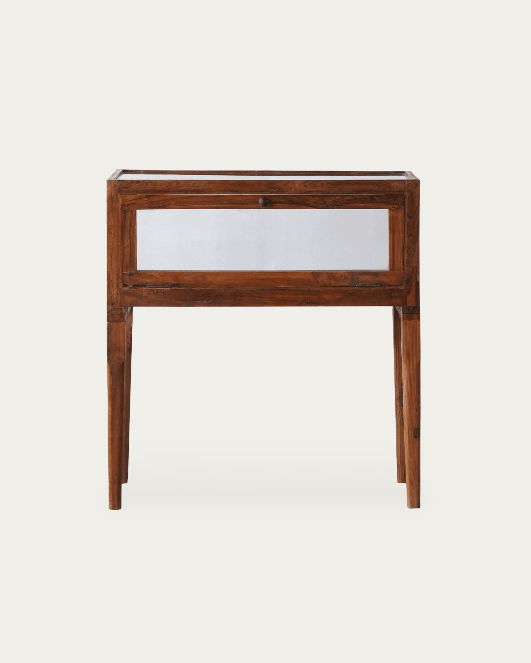 Use it as a coffee table in your living room, or mix it into a space with cleaner lines to add some texture. This vintage wood coffee table works well with low-slung seating and is part of a set if you want to keep things consistent.