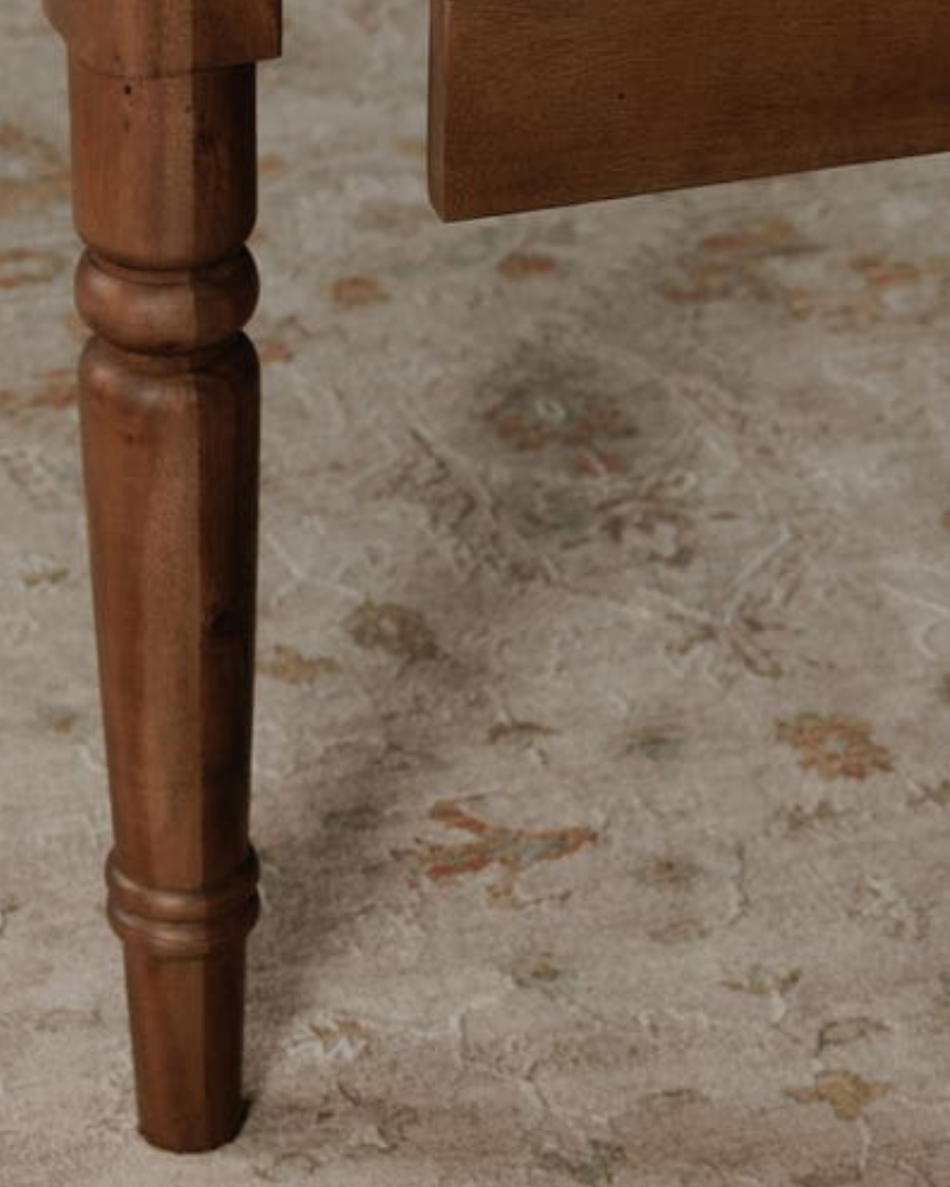 The Jesse stool feels like building blocks grown up—legs made from rounded spheres stacked in rhythm, topped with a solid wood seat. The organic edge and glazed brown finish add contrast to the playful base. Use it as extra seating, a side table, or just a sculptural piece that brings both shape and function to the room.