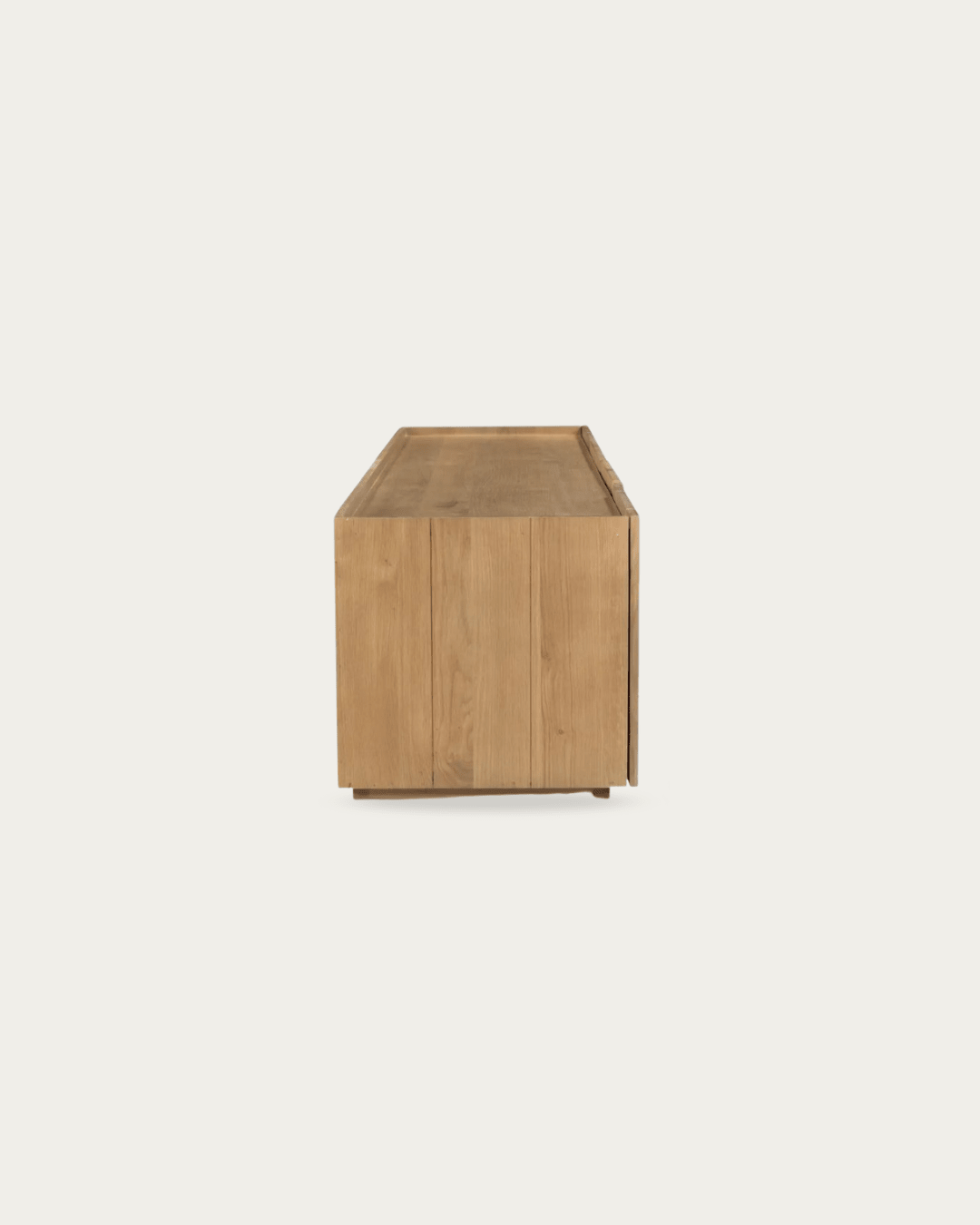 Our Magnus modern oak media cabinet, the piece that's all about natural vibes and solid oak goodness. With its organic energy and contemporary style, this piece is perfect for lots of decor styles. Packed with plenty of storage space. This modern wood cabinet will look amazing in your living space.