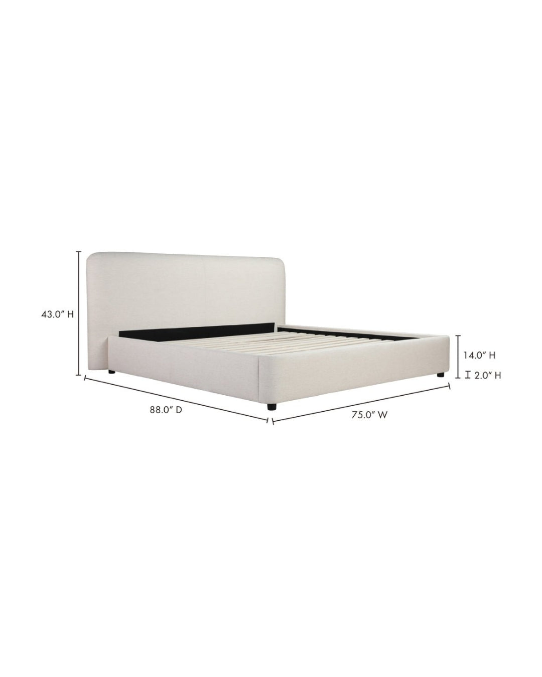 Baldur has a solid pine wood frame and a linen-blend upholstered finish that’s made for everyday use. The foam-padded headboard gives you a comfortable spot to lean back, whether you're reading, working, or watching. This stylish linen bed frame has a low profile with wooden legs and includes a slat system, so no box spring is needed. If you’re using an adjustable base, just remove the slats. Assembly is required.