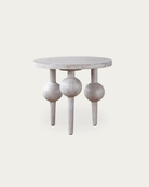 The Einar round side table adds a fun touch to any room. Its three quirky legs each have a big, round "bubble" at different heights, giving it a playful vibe. Made from recycled pine wood and finished in a fresh whitewash, it’s not just an accent piece—it’s a conversation starter!
