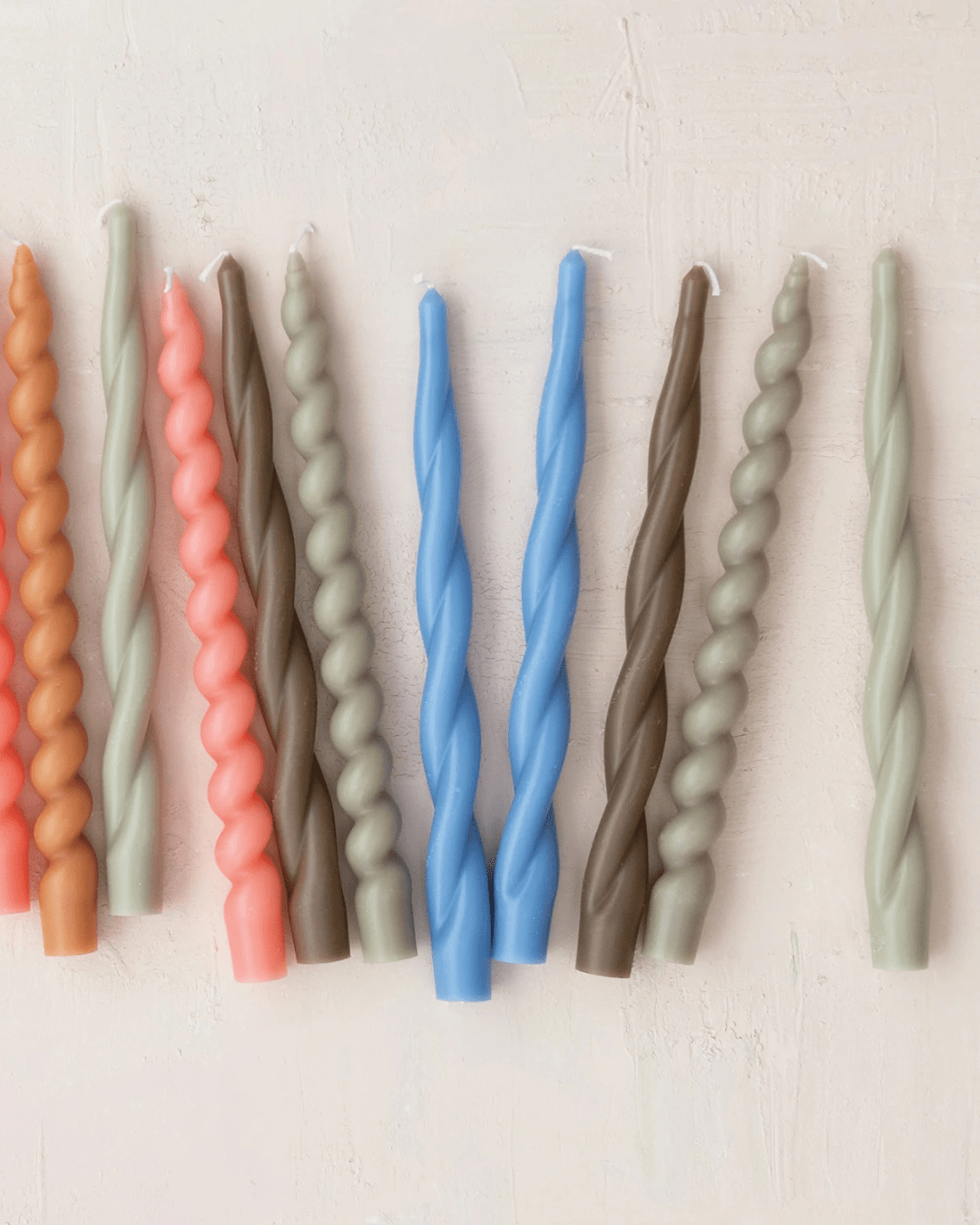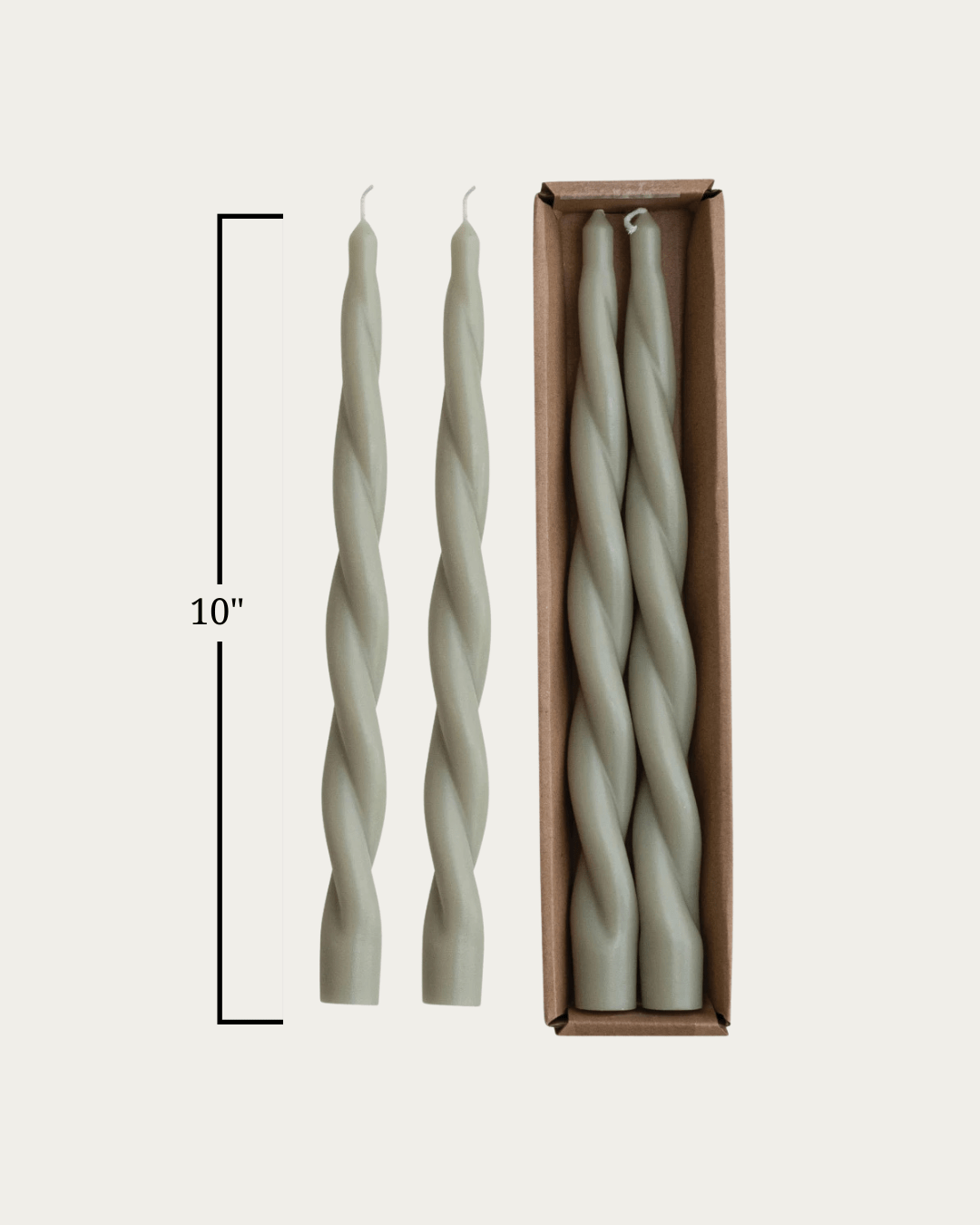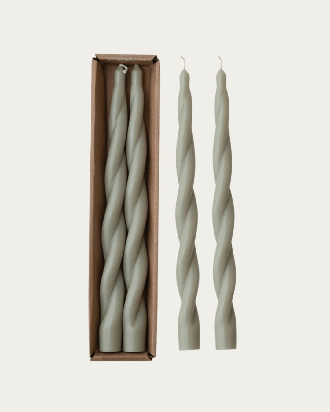 The Leiknir taper candles bring a sculptural twist to a classic form. Cast in a soft grey, each unscented paraffin wax candle holds its shape while burning with a steady glow. The spiral design adds movement to a tablescape—pair with stoneware, glass, or brass for contrast. A colored candle that feels modern yet grounding, perfect for layered dining or quiet evenings.