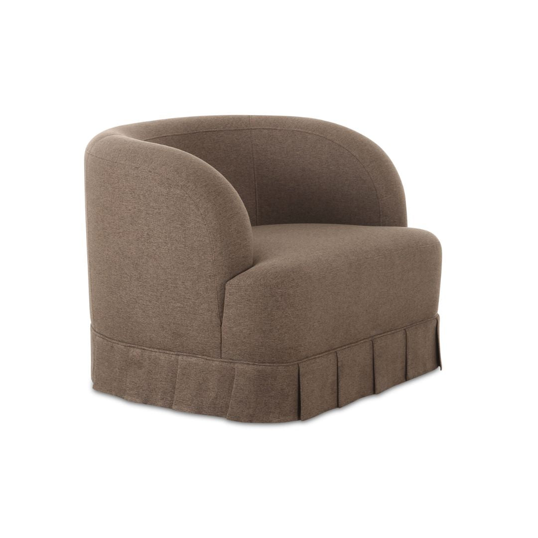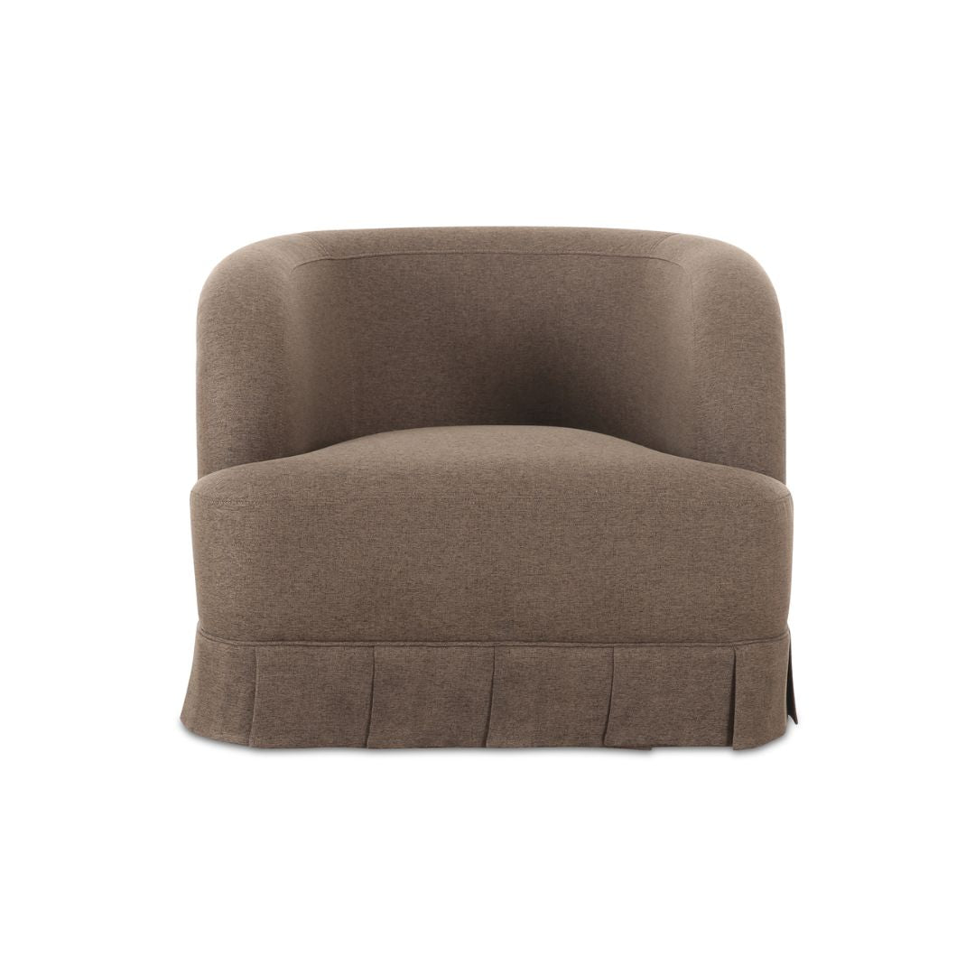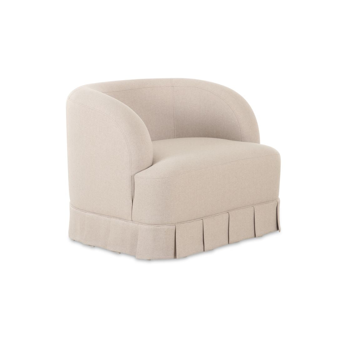 We are in love with the Runa swivel chair. This feminine beauty showcases a stunning pleated base and a gracefully rounded shape, bringing a fresh texture to your space. It's the perfect piece to curl up and indulge in a good read.