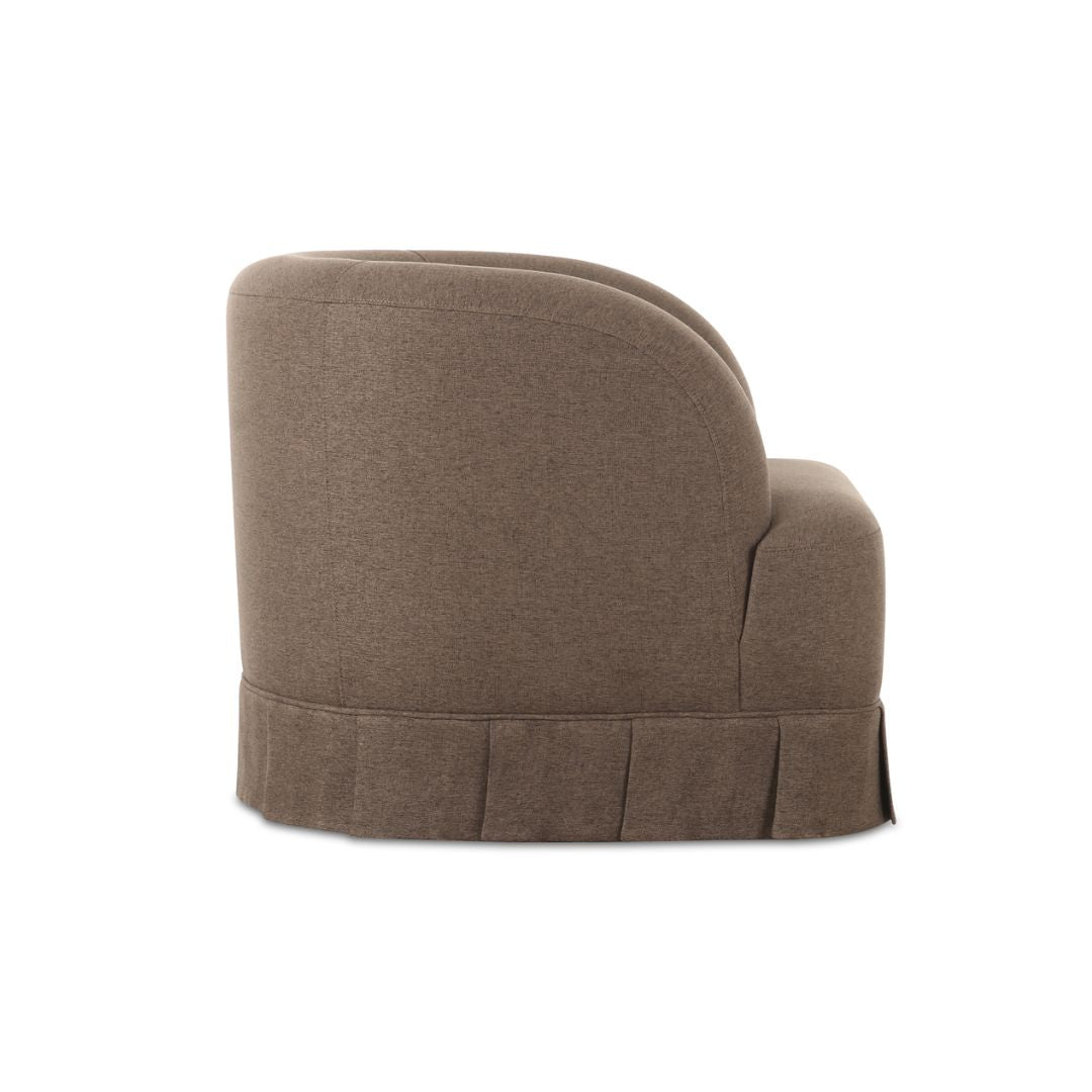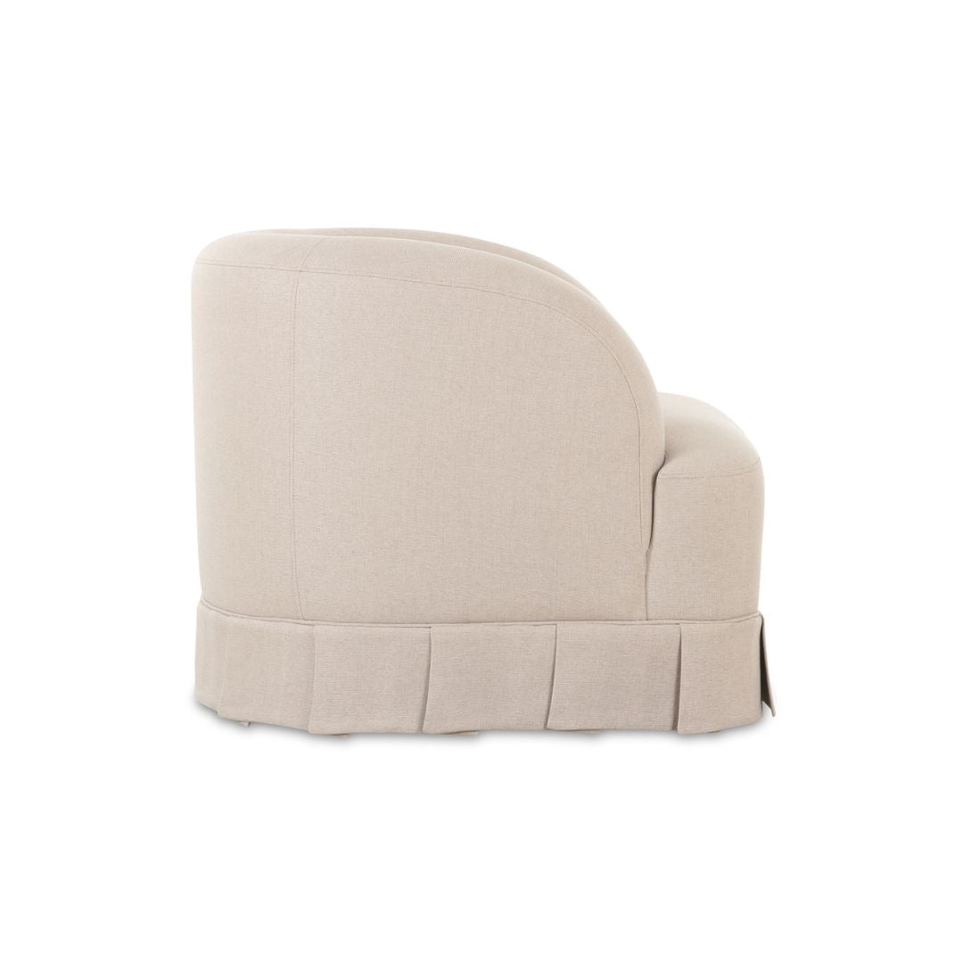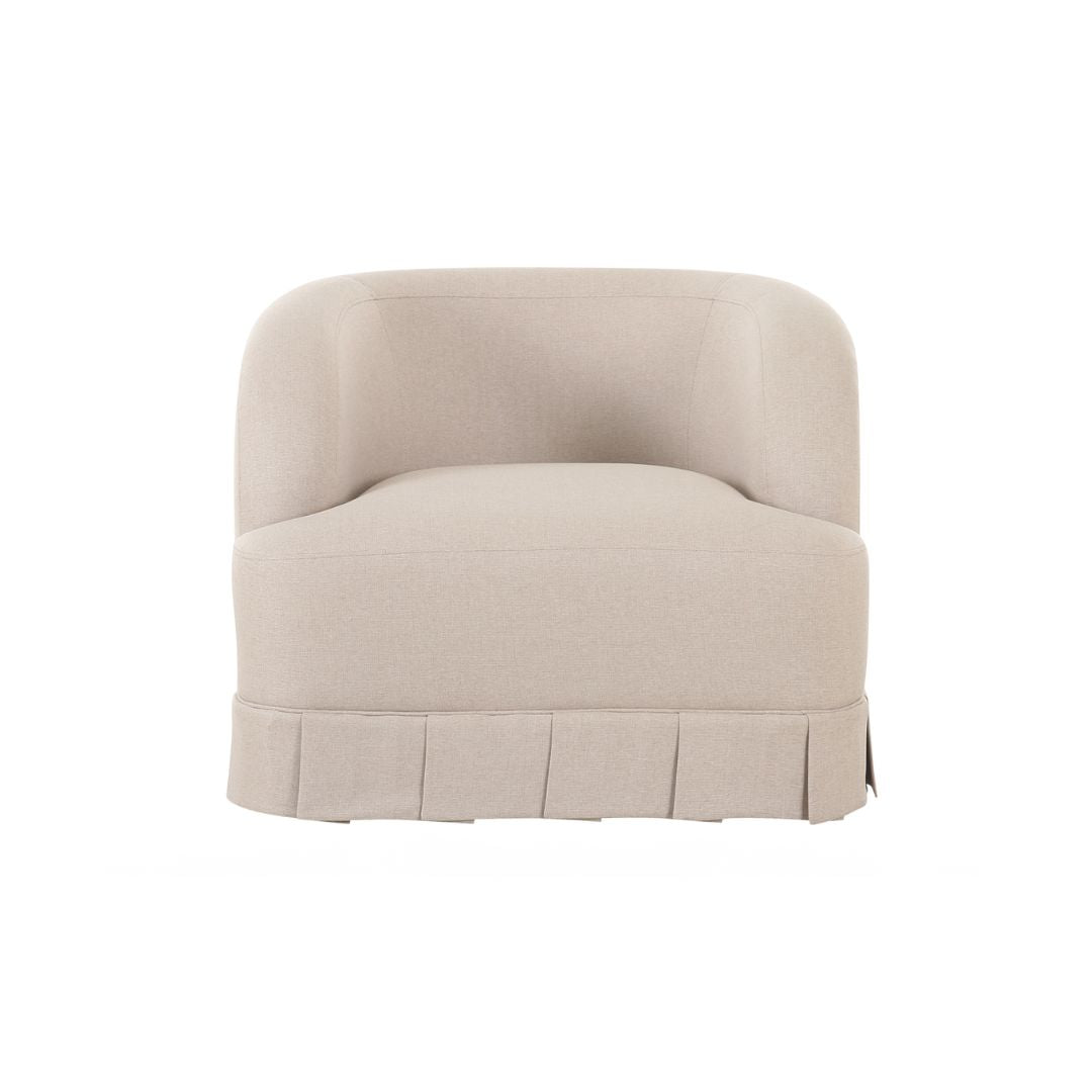 We are in love with the Runa swivel chair. This feminine beauty showcases a stunning pleated base and a gracefully rounded shape, bringing a fresh texture to your space. It's the perfect piece to curl up and indulge in a good read.