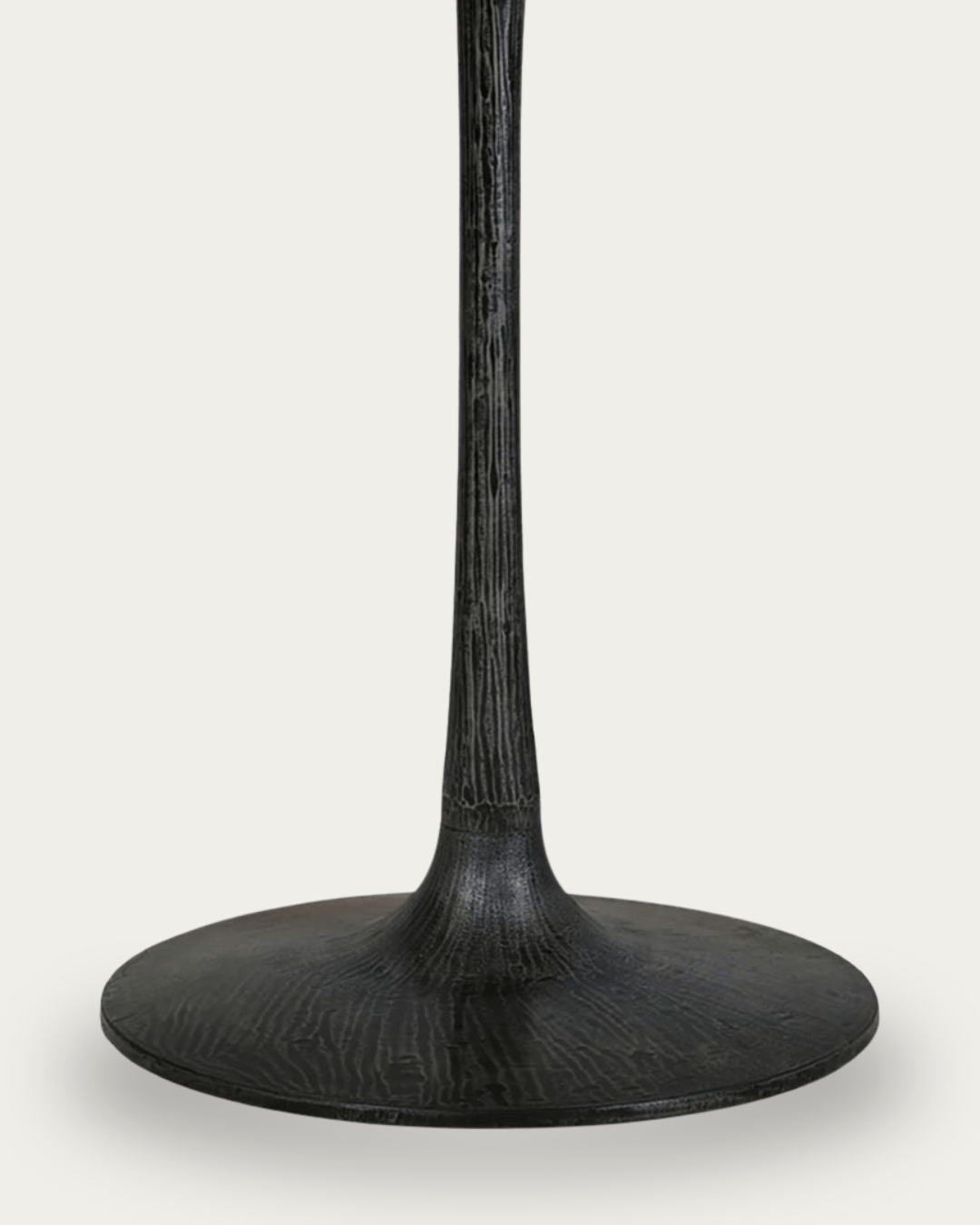 The Starburst round table quickly becomes the focal point of any room. Made from thin, pie-shaped wood slices, the Starburst round table radiates. This bleached wood dining table with a hammered black base is perfect for a variety of spaces and styles.