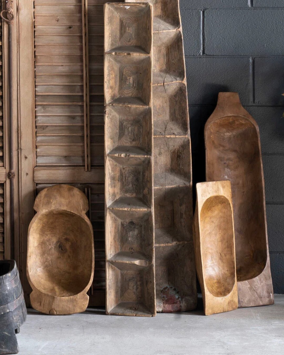 Tora is a vintage Turkish dough riser from the early 20th century, originally used by bakers to proof bread before baking. It’s now repurposed as a long, narrow centerpiece with carved compartments running the full length, giving you a structured way to style candles, objects or seasonal decor. Works best across a dining table, console or kitchen island. As a vintage item, each piece varies in shape, size and condition, with visible wear from use.