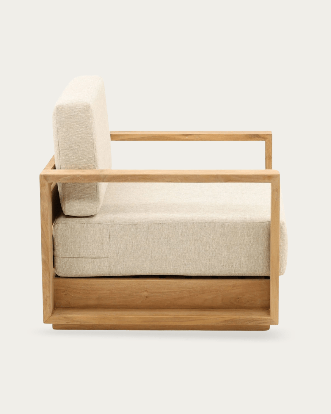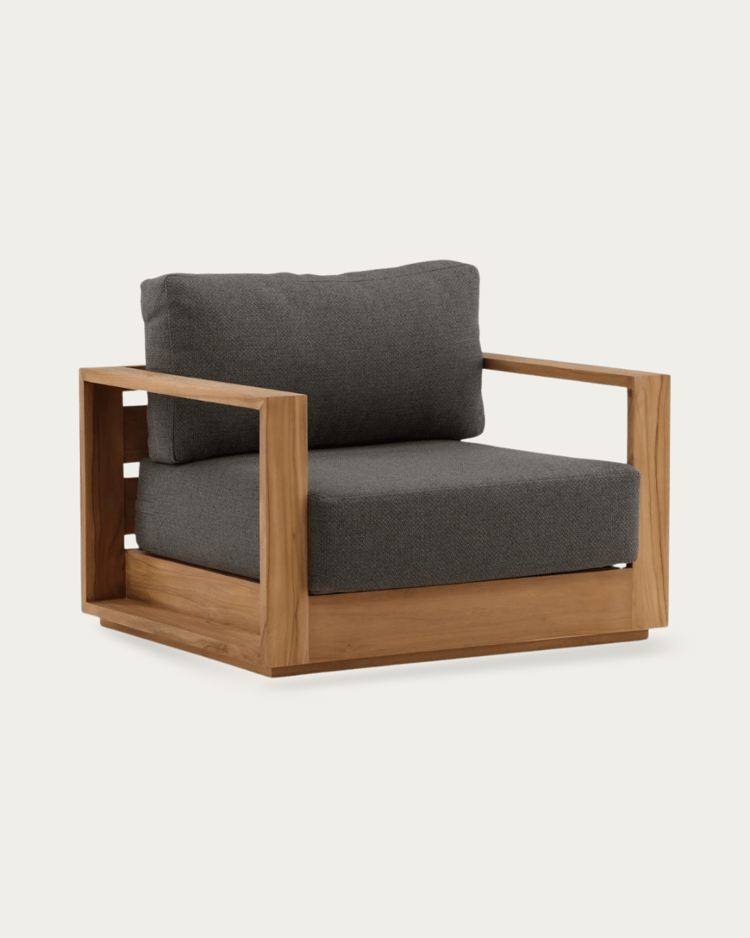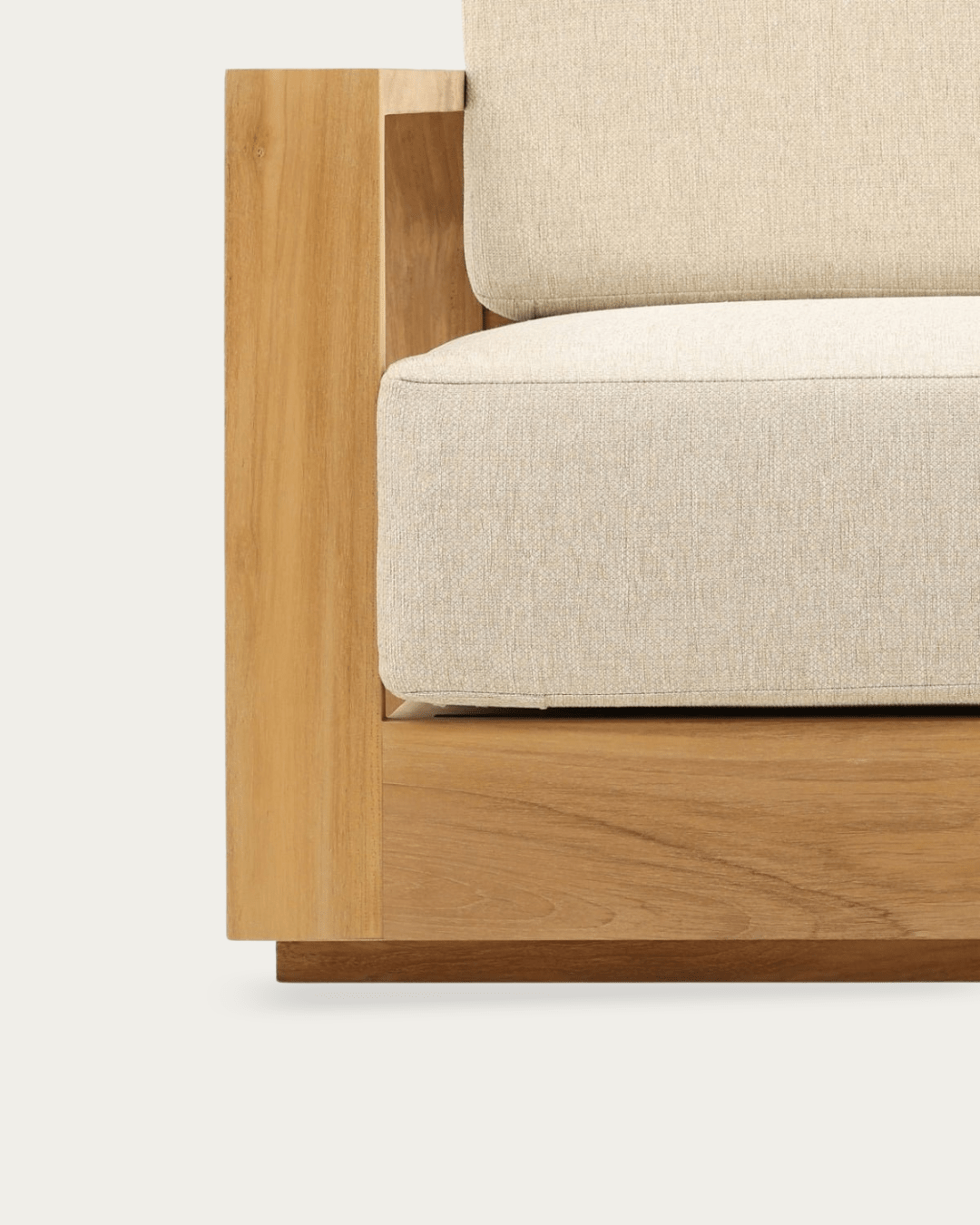 The Sindre is built with a solid wood frame and wide arms that double as a side table when you're too relaxed to reach for one. The cushions? Thick, firm, and weather-resistant, made with performance fabric that doesn’t fade or whine about sun exposure. Available in dark grey or cream, depending on your vibe. This outdoor lounge chair is made for patios, balconies, decks, and the occasional all-day sit.