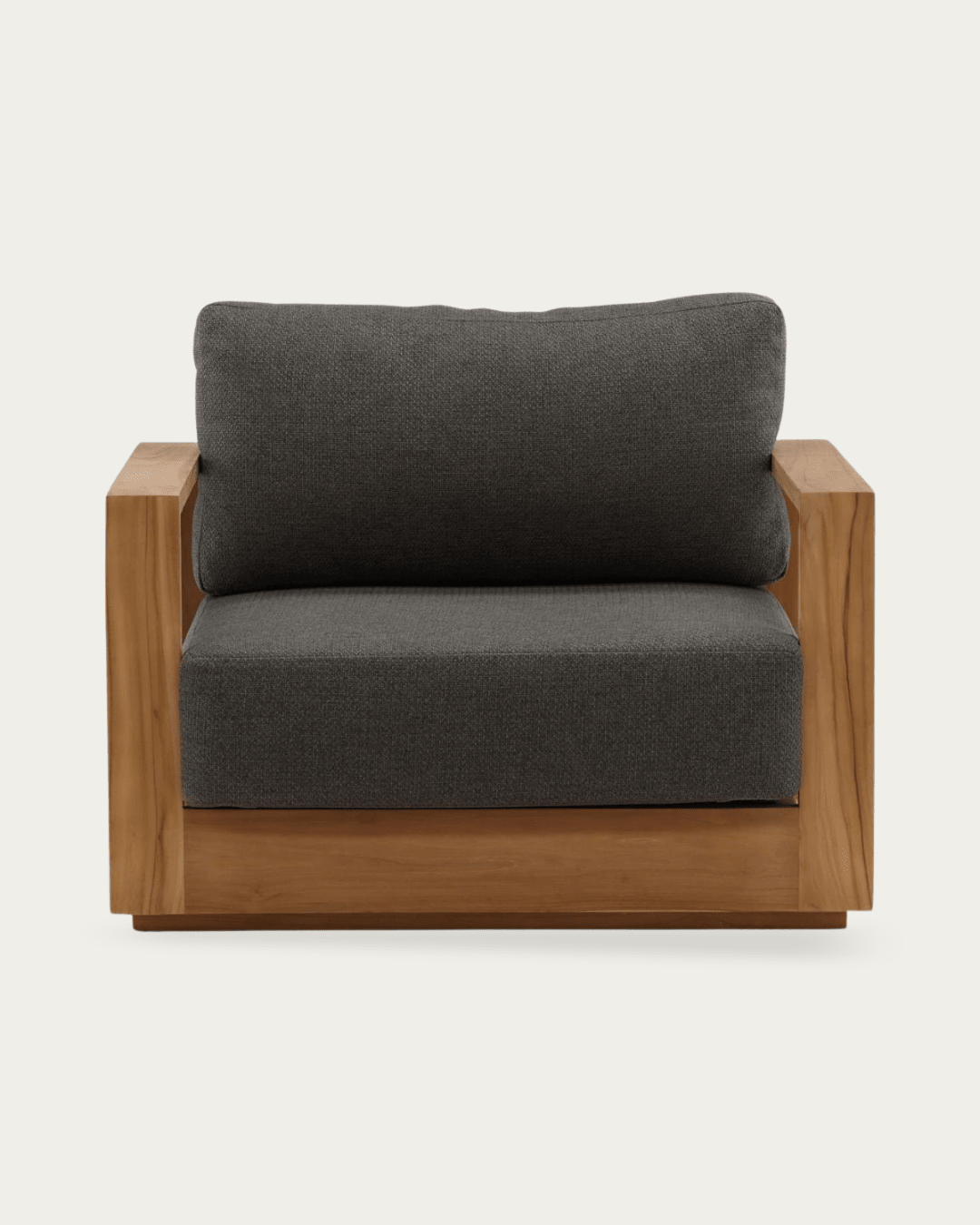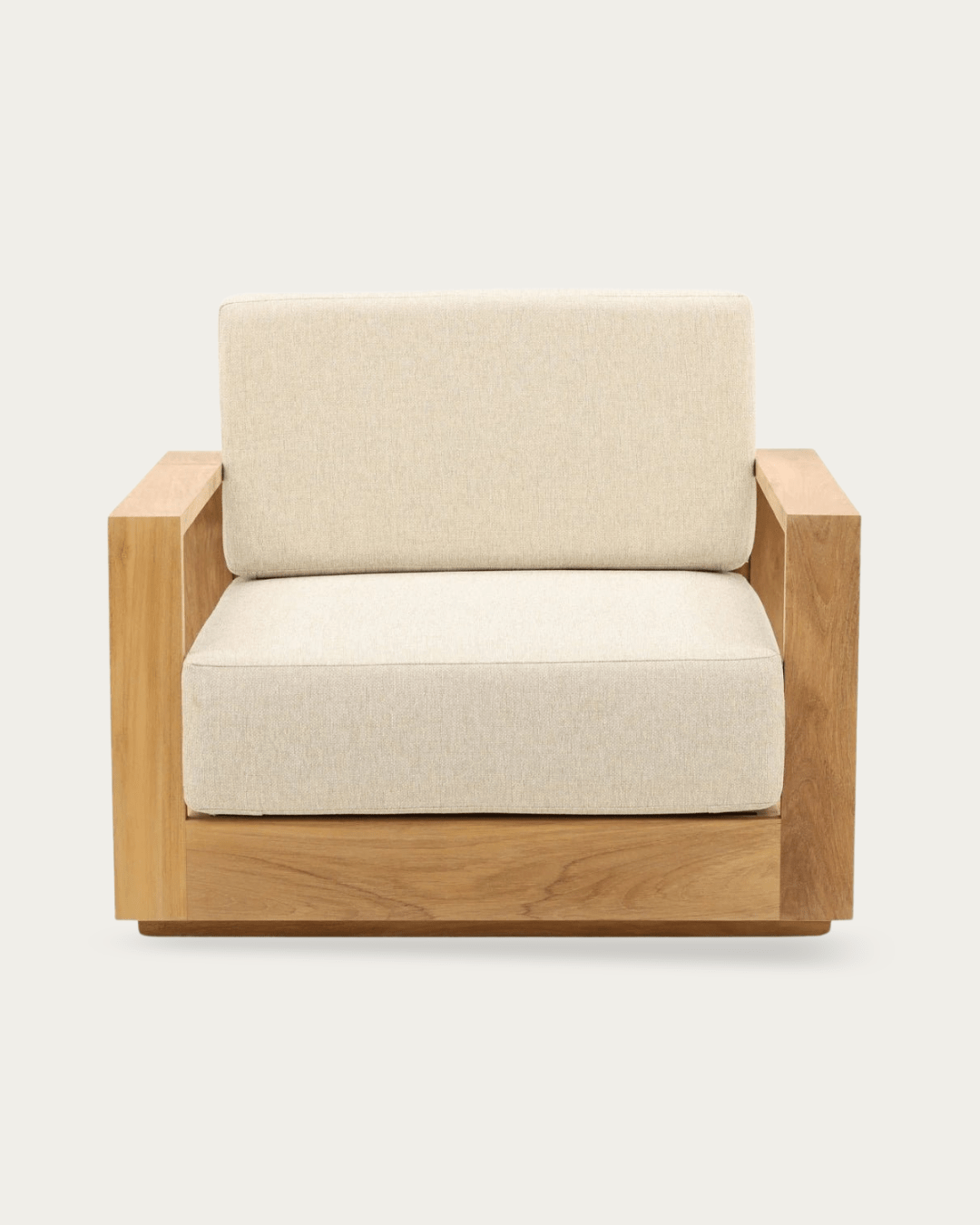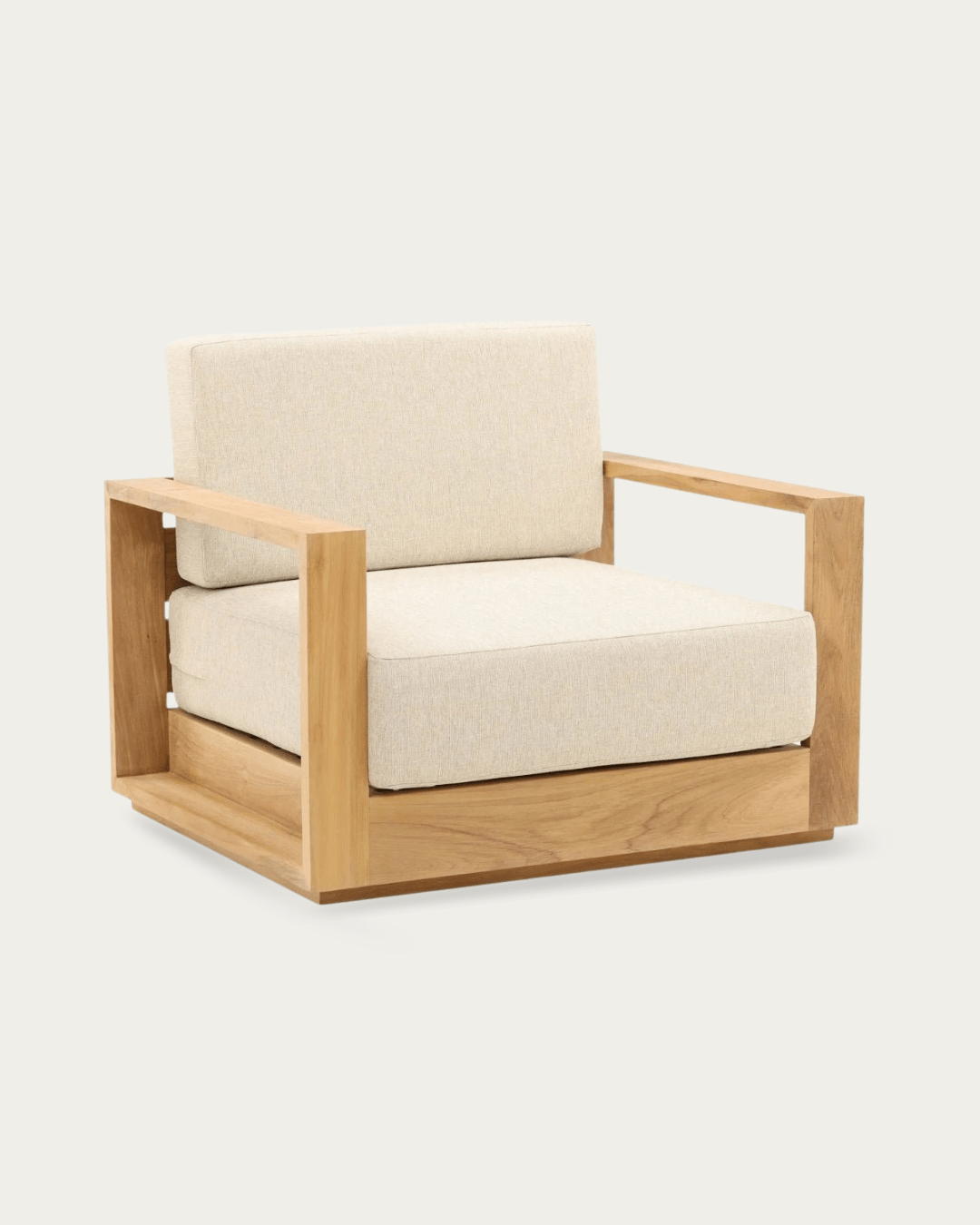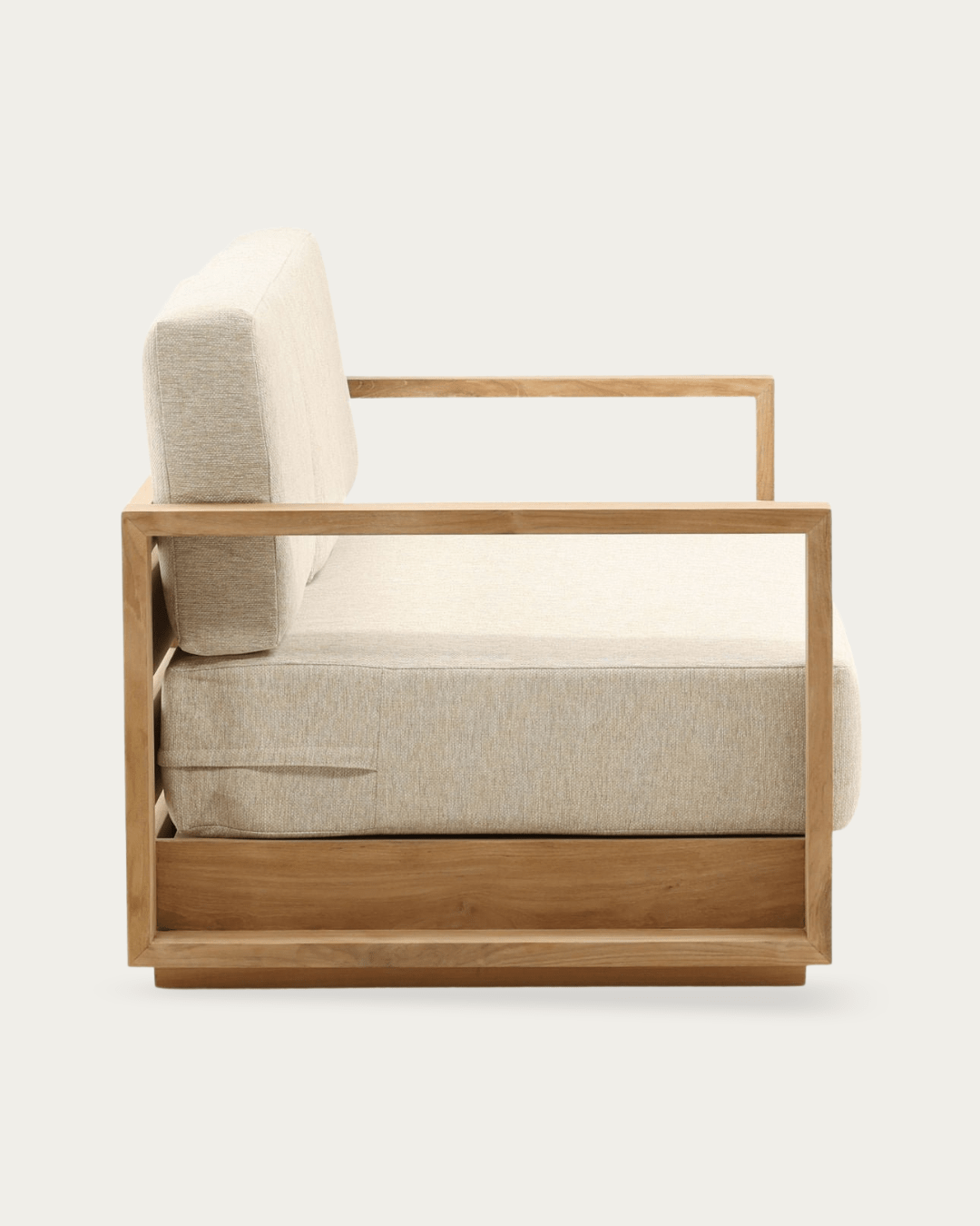 The Sindre is built with a solid wood frame and wide arms that double as a side table when you're too relaxed to reach for one. The cushions? Thick, firm, and weather-resistant, made with performance fabric that doesn’t fade or whine about sun exposure. Available in dark grey or cream, depending on your vibe. This outdoor lounge chair is made for patios, balconies, decks, and the occasional all-day sit.