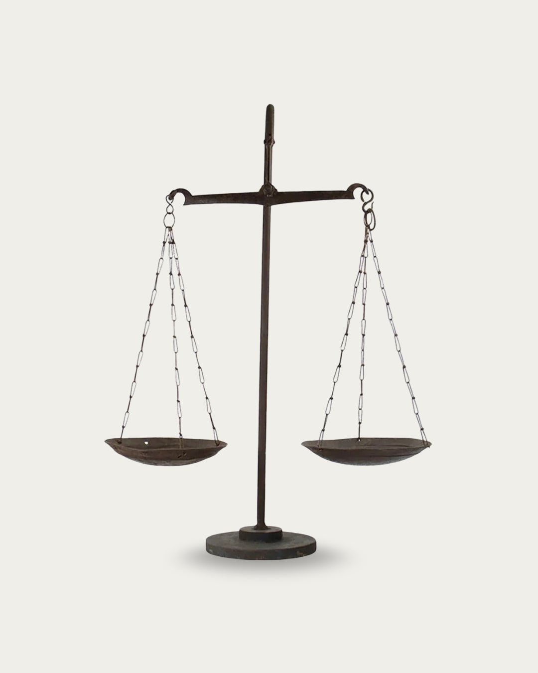This vintage weight scale once settled deals—spices, metals, whatever was on the table. The iron base is newly reconstructed, but the arms and pans are the real thing, pulled from trade markets across India. It’s all function-meets-form, even if you’re just using it to hold air plants or stage your shelf. Each piece varies in size, shape, and wear—because it should. Fits into any vintage decor home setup that leans more storied and less polished.