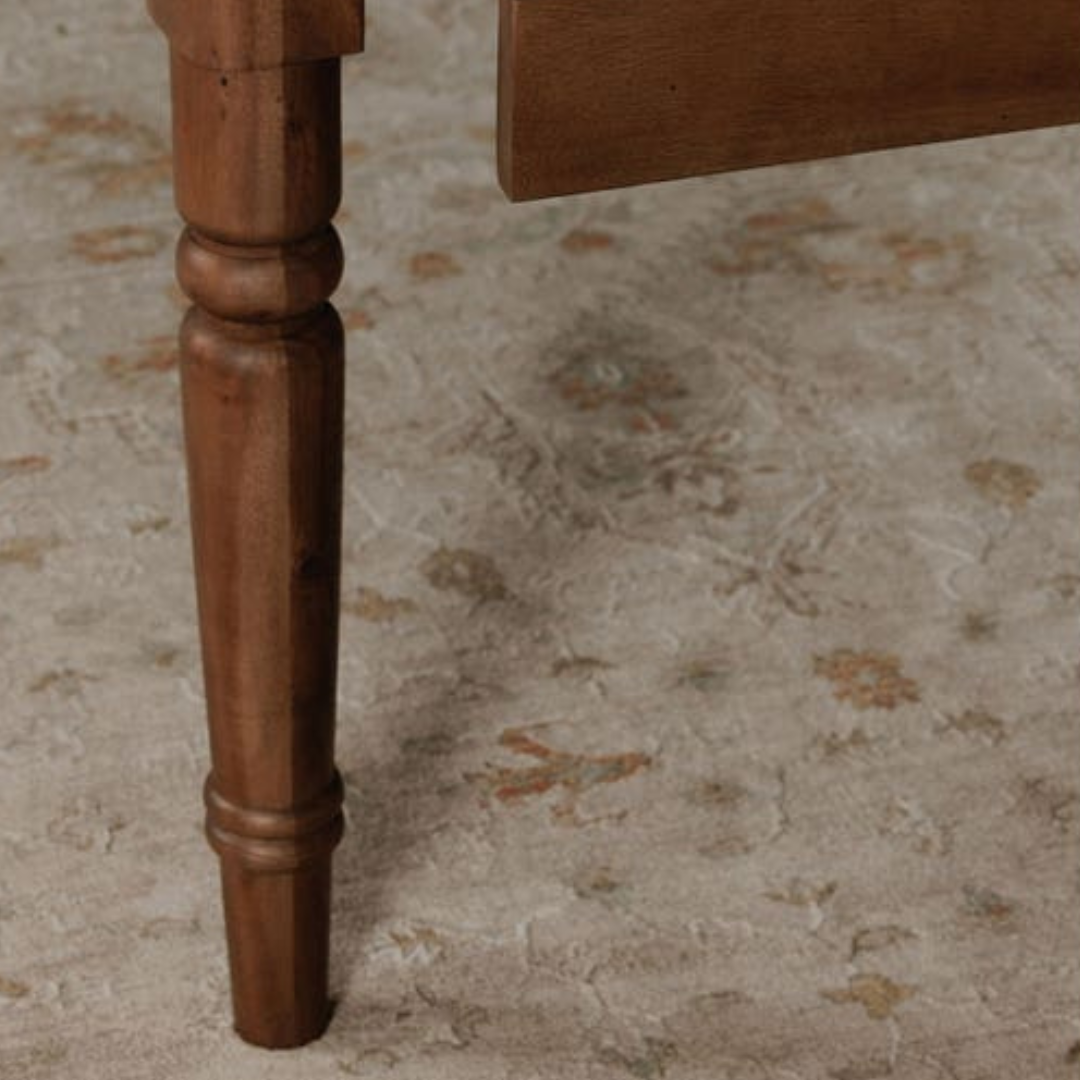 The Erik dining table is built for function and versatility. Made from solid wood in a mid-tone brown finish, this rectangle dining table has a solid presence that fits right in with both traditional and transitional styles. The standout feature? Two horizontal drawers at each end for easy storage—because who doesn’t need more space for the random things that pile up around the dining area? The overhanging tabletop adds a bit of depth to the design, offering that extra surface space without feeling bulky. Full assembly is required.