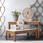 A marble coffee table that feels both polished and inviting. Crafted from rich mango wood slats, the textured base adds warmth, while the veined marble top keeps things refined. The deep caramel finish gives this coffee table in marble a bold yet inviting look, making it perfect for everything from morning coffee to cocktail hour. If you love the mix of natural materials, this wooden coffee table is a standout. We love how it balances sophistication with everyday function!