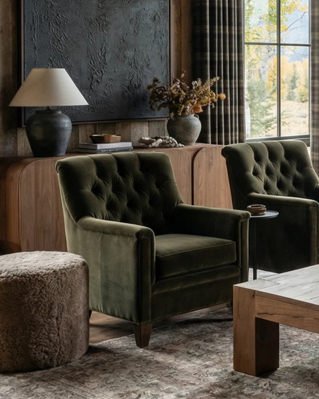 Meet the Griffin chair — a structured accent chair with a classic tufted back, tailored arms, and a compact silhouette designed to anchor a room without overpowering it. The deep seat, subtle winged back, and tapered legs give Griffin the feel of a traditional lounge chair, updated with clean proportions for modern living.