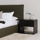 The Bjorn bed provides durability through its solid pine-poplar frame, complemented by a linen-blend upholstery. The foam-padded headboard gives you a comfortable backrest for late-night scrolling or early-morning coffee. Slats come included, so you can place your mattress right on top—no box spring needed. If you’re using an adjustable base, just remove the slats and set it in. Assembly is required.