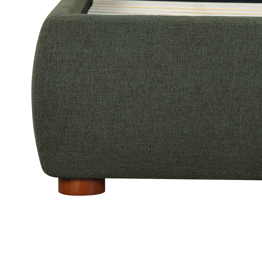 The Bjorn is designed to be exactly what you need in a bed. Upholstered in a soft linen blend, it’s built with a solid pine and engineered wood frame that holds steady. The tall, foam headboard is ready for your late-night reads or morning coffee in bed. Supportive slats make your mattress stay put—no box spring needed. If you're opting to change into an adjustable base, simply remove the slats. Some assembly is required.