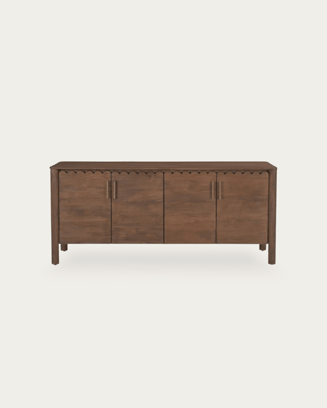The Sadie scalloped edge sideboard brings in modern aesthetics while maintaining that charm with the sweet scalloped details. Made from acacia wood featuring sleek curves and a smooth finish. Perfect for an entry, hallway, or living space.