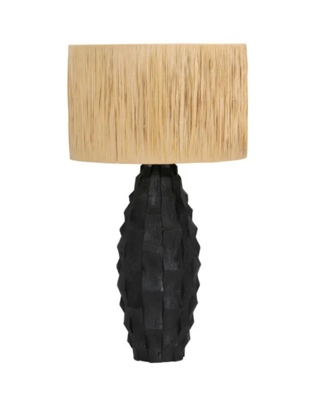 The Silliya table lamp caters to texture lover with its raffia shade and wooden base. With a stunning black wood carved base and a textured natural raffia shade, this lamp brings character and charm to any space.