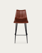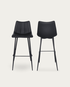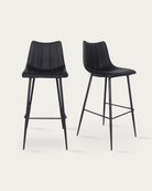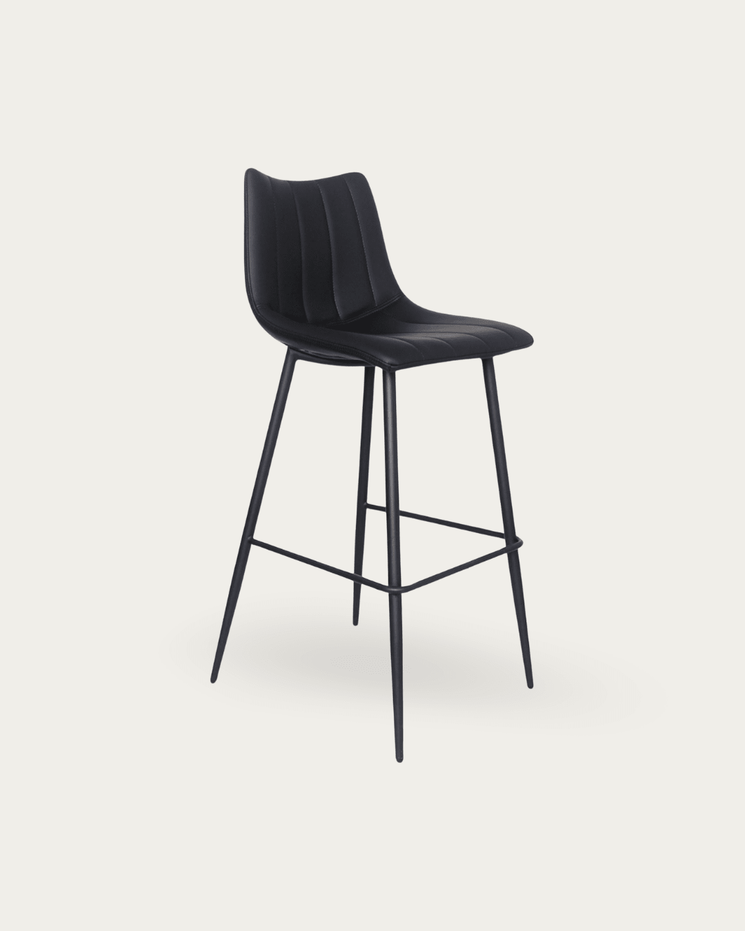 The Valdemar faux leather bar chairs do exactly what you need them to — look good, feel solid, and hold up to daily use. They're fully upholstered with a shaped seat and high-density foam, so staying put at the kitchen island or bar counter isn’t a chore. Vertical line stitching gives the surface just enough structure. The low-rise back keeps the profile clean — a minimalist bar stool look without cutting back on support. Slim black metal legs and a footrest handle the rest, with floor glides to keep your space scratch-free.