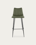 The Valdemar leather bar chairs come in a set of 2, designed with a low back, clean vertical stitching, and seats upholstered in vegan leather that holds up to daily wear. High-density foam adds comfort, and black steel legs with a footrest and protective floor glides keep things stable. Set them up at the kitchen counter or add a few contrasting chairs to change up the look—either way, they’re designed to fit in easily with zero hassle. Some assembly required.